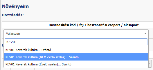 eGN: KEV01 és UGA03 esetén a keverékhez tartozó növénykultúrák hasznosítás kódja >>